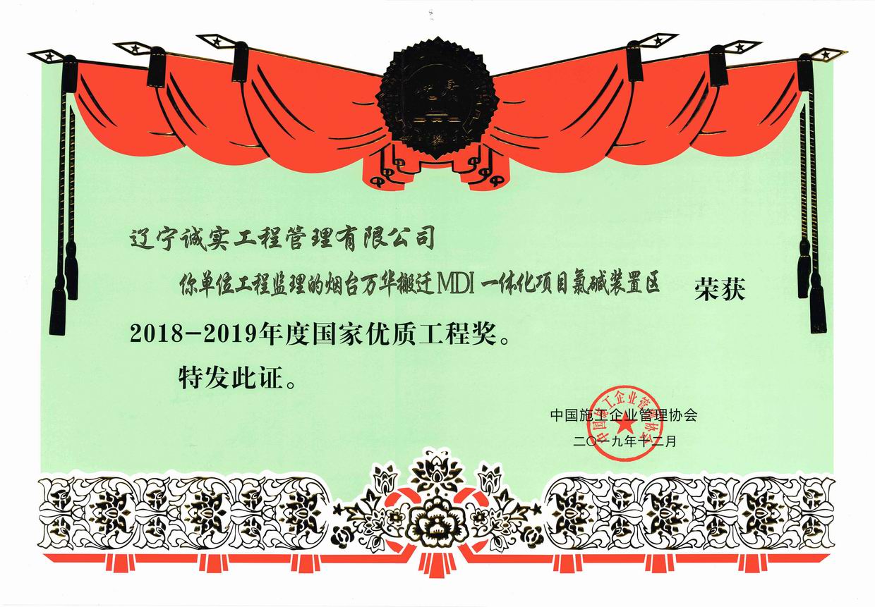 2018-2019年度国家优质乐鱼官方网站-乐鱼(中国) 奖(烟台万华搬迁MDI一体化项目氯碱装置区)