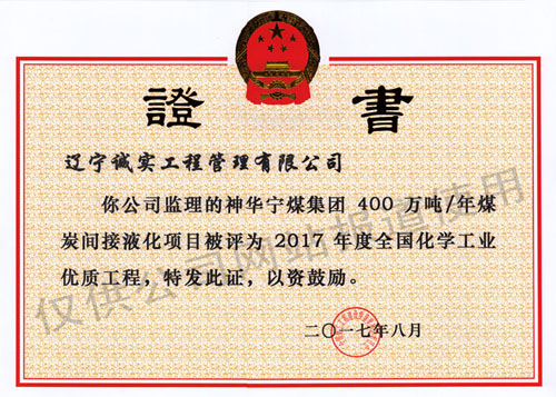我单位所监理的《神华宁煤集团400万吨/年煤炭间接液化项目》被中国化学施工企业协会评为2017年度全国化学工业优质乐鱼官方网站-乐鱼(中国) 奖。在此次评选中,共有81项乐鱼官方网站-乐鱼(中国) 、178个单位及156名突出贡献者获得表彰。此次,是我单位时隔4年第二次获得该奖项殊荣。