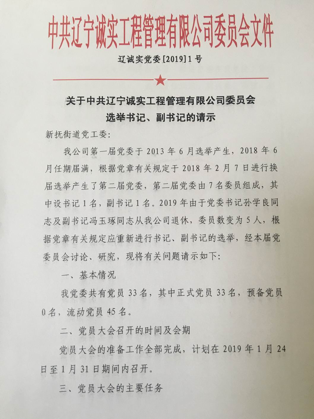 我乐鱼官方网站-乐鱼(中国)第一届党委于2013年6月选举产生,2018年6月任期届满,根据党章有关规定于2018年2月7日进行换届选举产生了第二届党委,第二届党委由7名委员组成,其中设书记1名,副书记1名。2019年由于党委书记孙学良同志及副书记冯玉琢同志从我乐鱼官方网站-乐鱼(中国)退休,委员数变为5人,根据党章有关规定应重新进行书记、副书记的选举。我乐鱼官方网站-乐鱼(中国)于2019年1月10日申请换届,并于2019年1月16日得到批复。