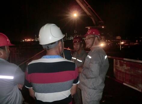 中规模较大项目,参战单位多,天气炎热,条件艰苦。该监理部近30名员工,其中党员8人,作为第一负责人,任润东同志注重发挥党支部的战斗堡垒作用和全体党员的模范带头作用,讲究工作方法,和员工交心谈心,监理部内部和谐向上。在他的带领下,各专业密切配合,克服种种困难,坚守现场,严格把关,较好的履行了监理的责任和义务,在惠炼12家监理单位月度评比中,连续获得较好成绩,多次受到业主通报表扬,为我乐鱼官方网站-乐鱼(中国)在中海油监理市场长足发展打下了坚实基础。(以下照片为任润东同志现场施工前早会安全讲话及夜间工地巡视检查)