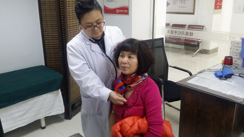 医生拿着听诊器在为员工做内科检查