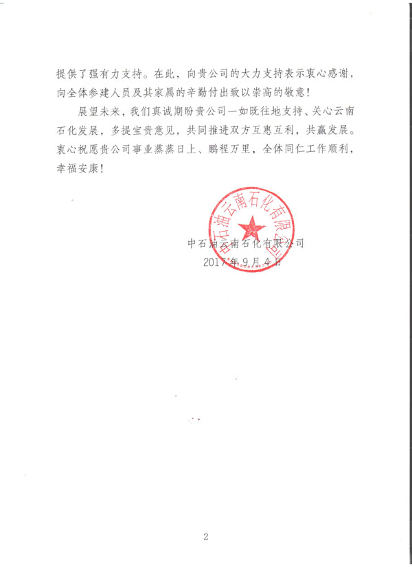 我乐鱼官方网站-乐鱼(中国)于今日收到由中国石油云南石化有限乐鱼官方网站-乐鱼(中国)发给我方的《感谢信》一封,信中提到:对于我方所监理服务的炼油项目自2006年启动筹备工作至今,我方监理人员不计利益得失,勇于承受压力,使得该项目近日顺利投产试车成功。对于我单位的工作给予极大的肯定以及衷心的感谢。对方还提到:希望双方在日后的共同发展中,互惠互利,共赢发展。