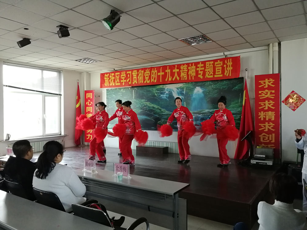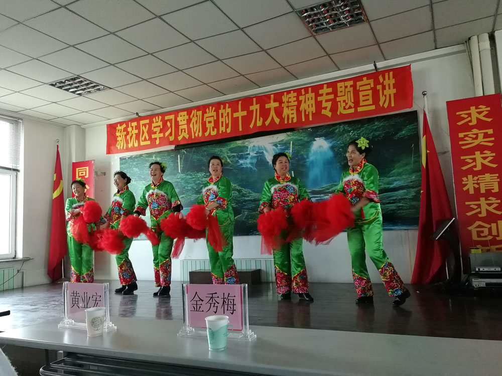 2017年11月5日,新抚区宣讲团在我单位六楼会议室召开了“新抚区学习贯彻党的十九大精神专题宣讲”。此次宣讲形式丰富多彩,新抚区老年文艺队巧妙的把十九大的精神编排在精彩的三句半、舞蹈、歌舞、快板、大合唱等群众们喜闻乐见的文艺节目里。此次宣讲主要针对的是新抚区各界群众。新抚区宣传部、新抚区街道、化塑社区领导参加了此次宣讲会。中国人民日报的记者也专程赶到抚顺,对此次活动进行了跟踪报道。会后,记者对于参会的群众进行采访,群众们纷纷表示非常喜欢这样的宣讲形势。随后,记者对我单位党建工作也进行了相关的采访,我单位董事长赵剑平接受了记者的采访。