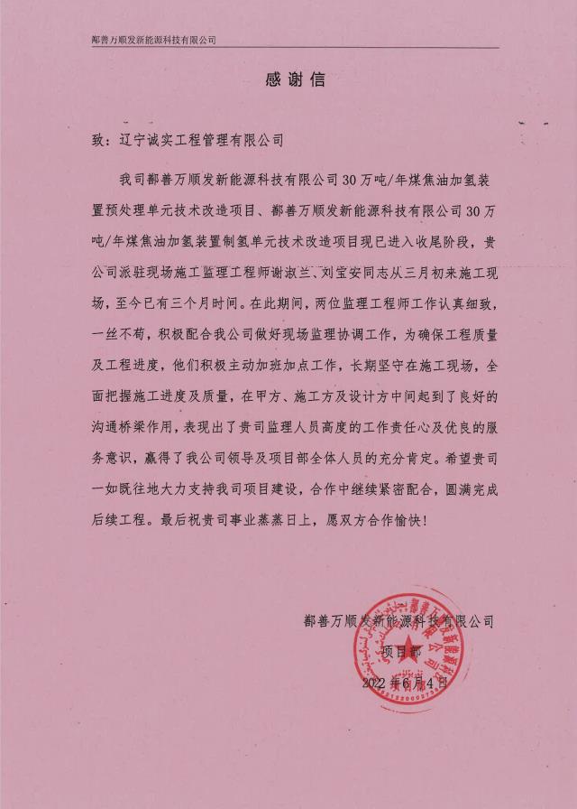 6月6日,乐鱼官方网站-乐鱼(中国)新疆鄯善项目部收到业主单位的表扬信。信中,业主言真意切地对我乐鱼官方网站-乐鱼(中国)监理人员在项目开展期间勤勉尽责的工作精神给予了高度的赞誉和充分的认可。业主的表扬是对乐鱼官方网站-乐鱼(中国)综合实力、服务质量、技术水平的又一次肯定,诚实人必将以此为动力,在严守安全底线、严把乐鱼官方网站-乐鱼(中国) 质量大关的道路上砥砺前行!