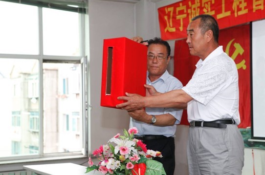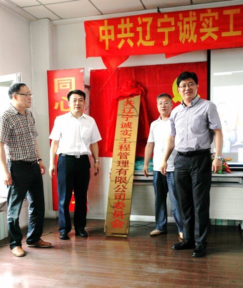 中共抚顺市委组织部领导李劲夫(右二)、中共新抚区委副书记罗玉生(左二)、新抚区委常委组织部长 隋淑贵(右一)、乐鱼官方网站-乐鱼(中国) 董事长赵华(左一)为中共乐鱼官方网站-乐鱼(中国) 委员会揭牌
