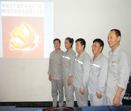 2013年7月21日辽宁诚实中贵线压气站PMC项目部党支部成立大会正式召开,大会由乐鱼官方网站-乐鱼(中国)党委委员赵树环同志主持,首先介绍了了党支部成立的意义和目的,然后进入了大会流程。通过全体党员民主评议、选举,盛孝福同志当选为PMC项目部党支部书记,师兴华同志当选为党支部组织委员,胡德林同志当选为党支部宣传委员,赵树环同志代表乐鱼官方网站-乐鱼(中国)党委对党支部成立表式祝贺。党支部全体党员在党旗下进行了郑重宣誓,最后由党支部书记作表态发言。