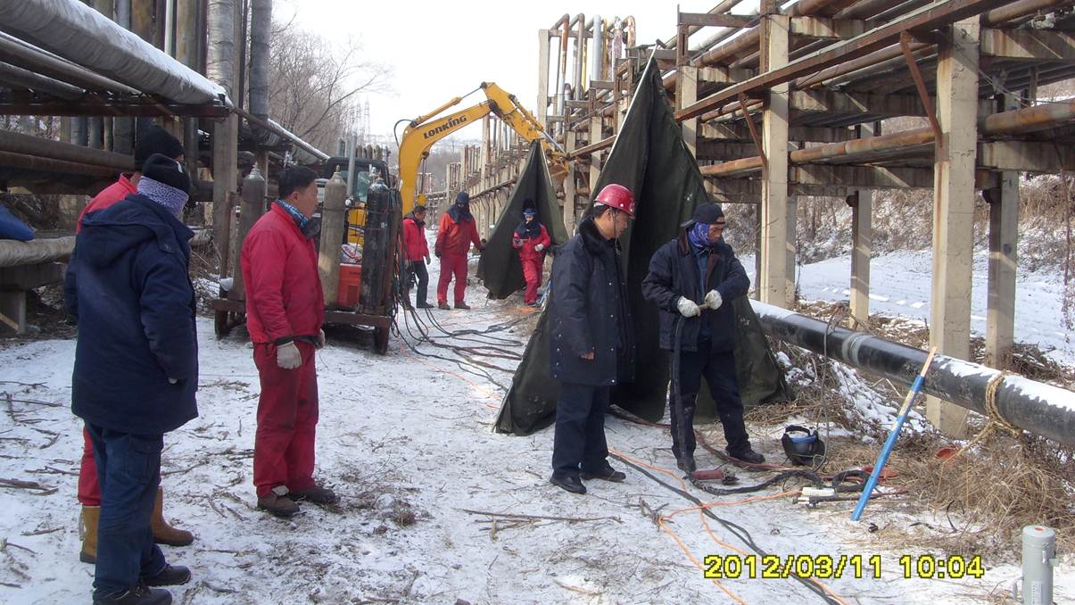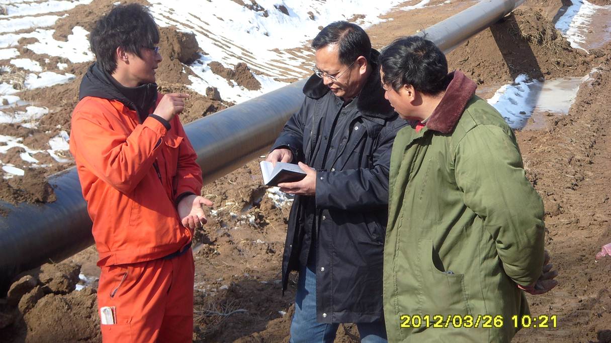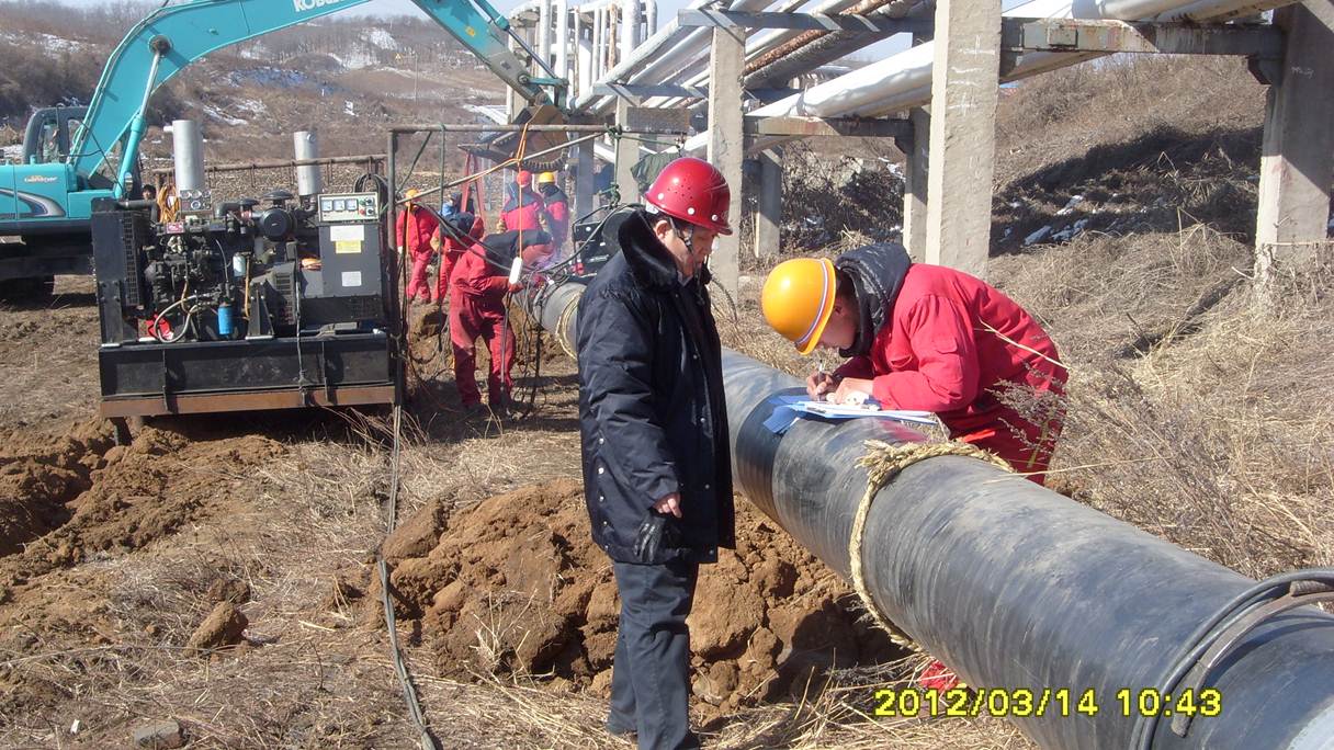 监理人员检查管线补口质量