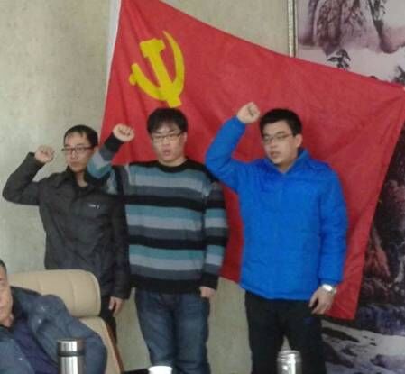 陈雷、邓戎龙、王振三名同志在党旗下庄严宣誓